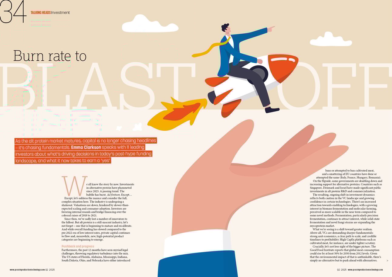 As the alt protein market matures, capital is no longer chasing headlines – it’s chasing fundamentals. Emma Clarkson speaks with 11 leading investors about what’s driving decisions in today’s post-hype funding landscape, and what it now takes to earn a ‘yes’